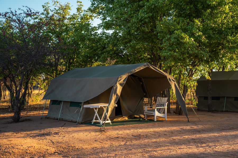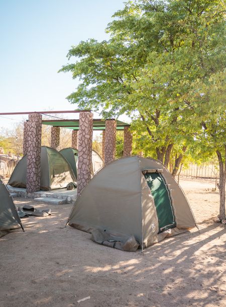 Onjowewe bush camp offers 3 individual tented accommodations, tent 1 has a double bed with extra space for a twin bed and the other 3 have each 2 single twin beds. All sharing an ablution block with 2 showers & 2 toilets. The bush camp also offers a sparkling splash pool with a spacious relaxing area.