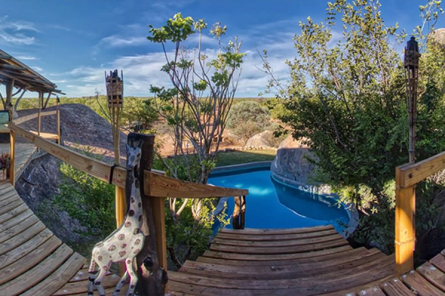 Nestled between ancient granite boulders and overlooking the savanna, the Onjowewe Tree House is an exclusive retreat where comfort meets nature. Some even say it feels like a real-life Neverland hideout.