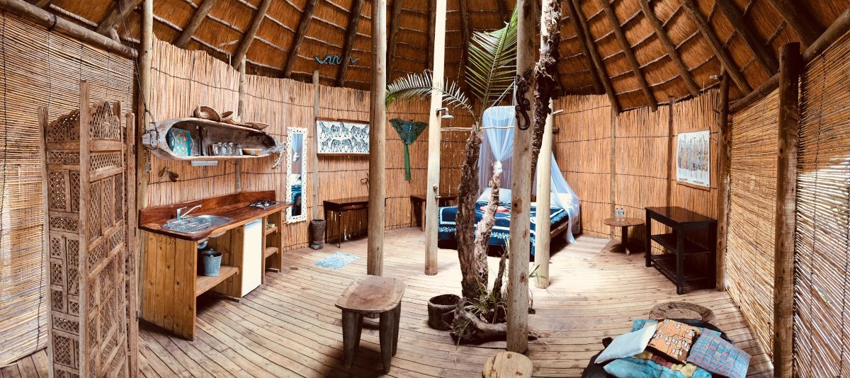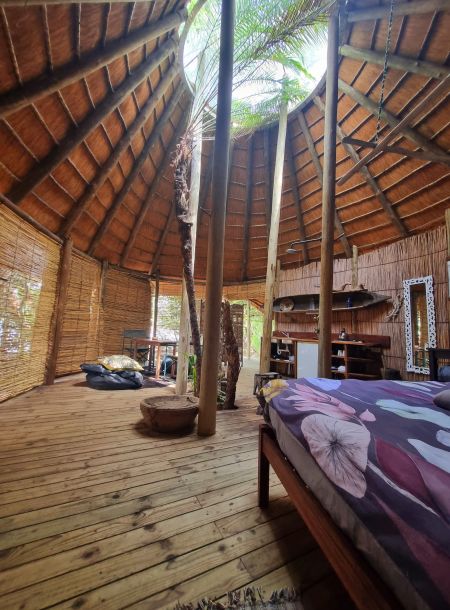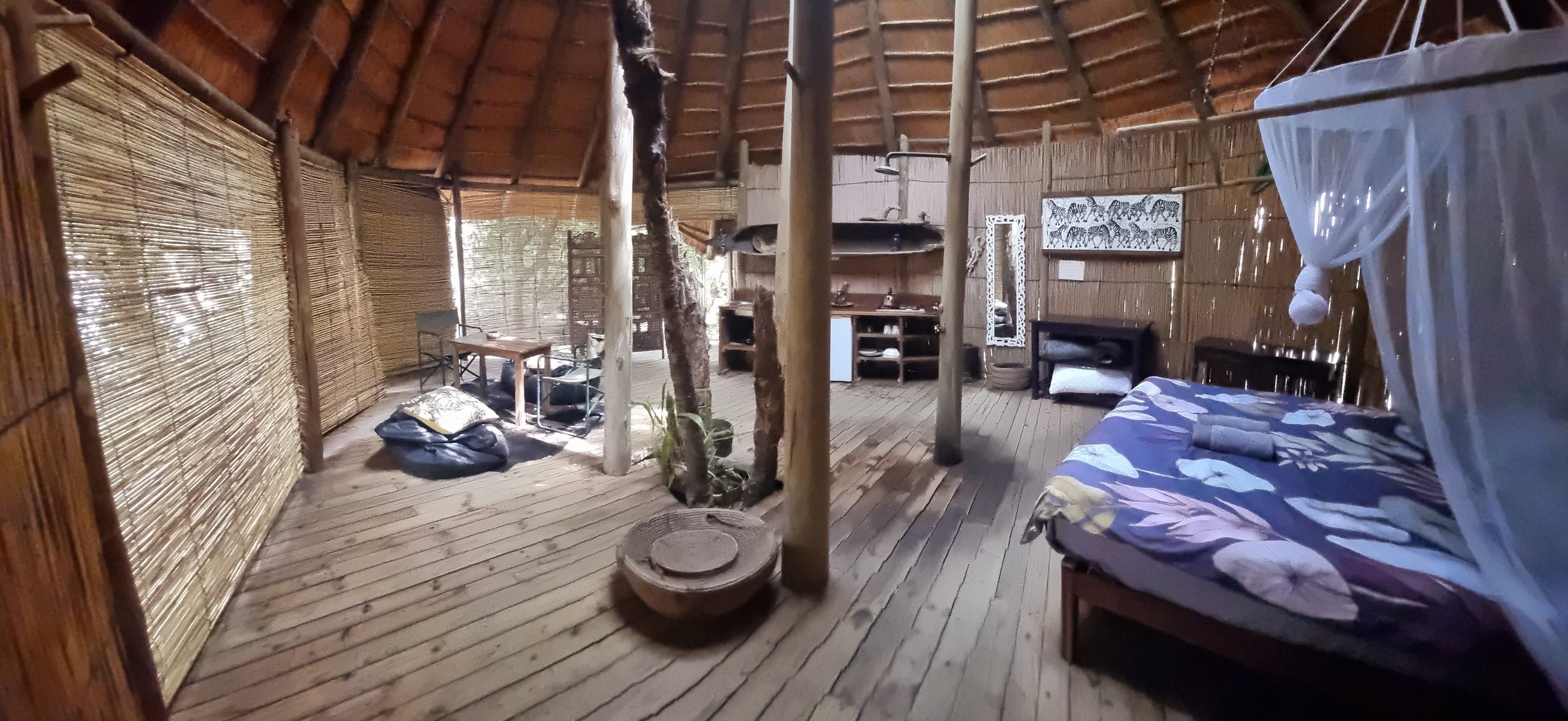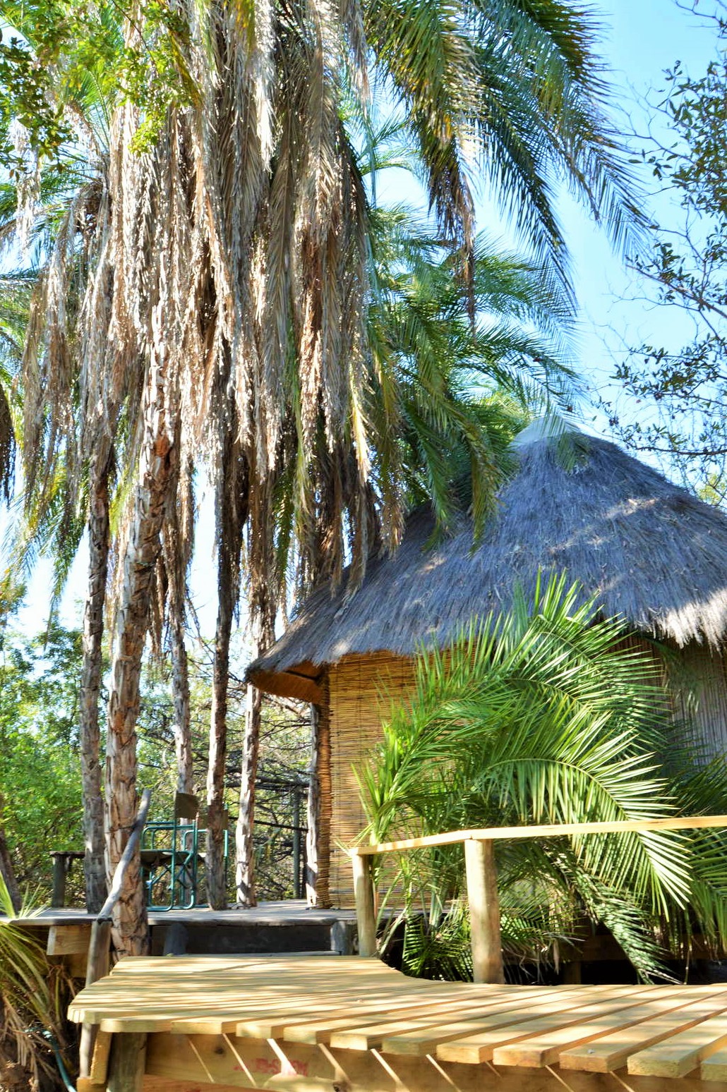 We used local thatch and reeds, but imported all the poles and planking from South Africa, where the timber is commercially grown, thus sparing our indigenous trees. All workers who helped with the building of the tree houses are locals. They excelled at the job and approached the project with as much enthusiasm and love for it as we did.