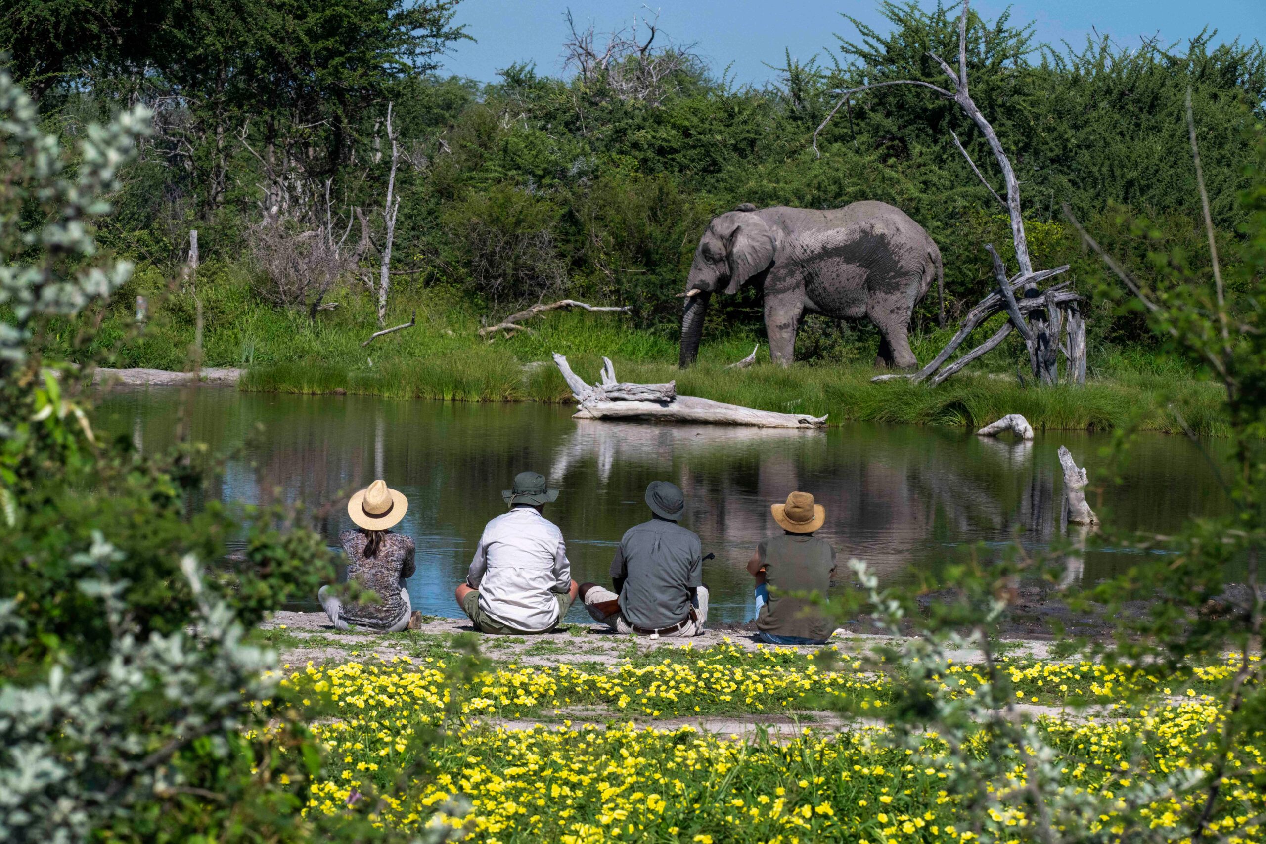 This unique ecosystem attracts an extraordinary concentration of animals, especially during the dry season, when elephants, lions, rhinos, giraffes, and large herds of springbok and zebra gather around its life-giving waterholes.